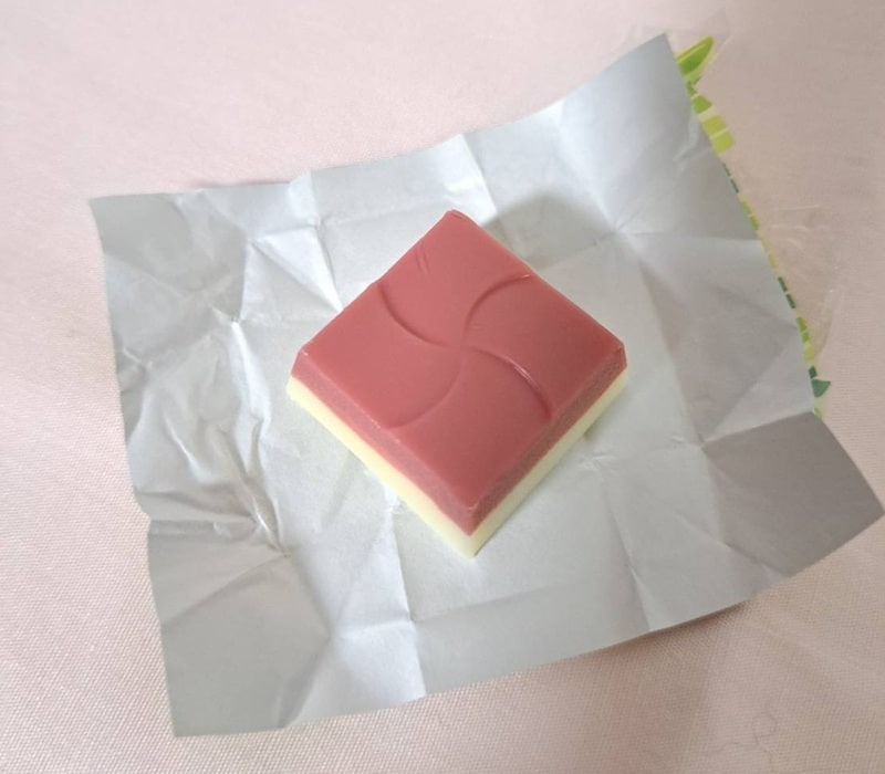 甘酸っぱいいちご風味生地にまろやかでミルキーなみるく風味生地のチョコレートを合わせて、中にサクサクのビスケットが入ったチロルチョコとなっています。